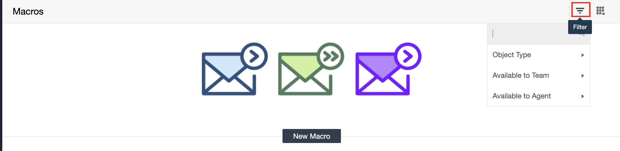 Introduced filtering options to help agents quickly locate relevant macros and canned responses.