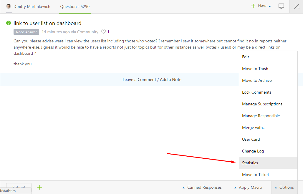 Can you please advise were i can view the users list including those who voted? I remember i saw it somewhere but cannot find it no in reports neither anywhere else. I guess it would be nice to have a reports not just for topics but for other instances as well (votes / users) or may be a direct links on dashboard ?