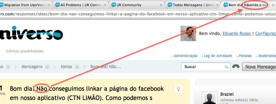 When the title of the response is accented, the page title shows the HTML tag instead (ã instead of ã).