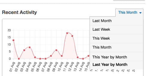 It would be great to have the ability to see month totals for current and last year in the Recent Activity. This way we can use this to show request trends out a bit. We can pull a report but the reports do not have graphics. Like to see a longer time period view.