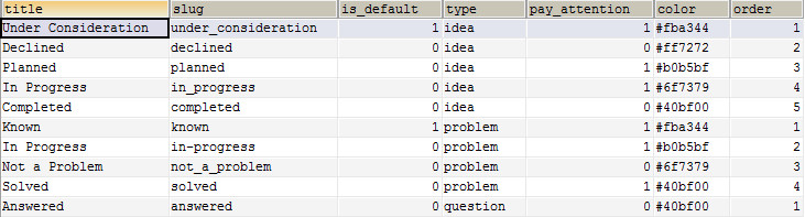 Sorry, we don't provide technical support for free version. But you may try to change response statuses directly (in {prefix}_response_statuses db table)